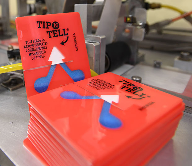 TIP-N-TELL Tilt Indicators can show whether the goods have been tilted, horizontally or upside down during transport or storage,