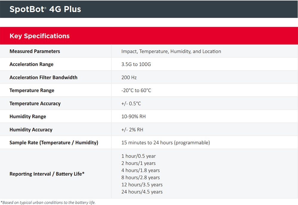 Companies around the world depend on SpotSee for impact monitoring solutions. The SpotBot 4G Plus measures impacts